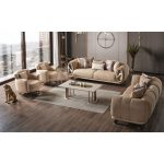LOVE sovrumsserie för med sig en känsla av lyx och elegans till ditt hem. Garderoben med spegeldörrar och guldtonade spegelinslag skapar både rymd och exklusivitet. Samma sofistikerade stil återfinns i byrån och nattduksbordet – båda försedda med dekorativa guldspeglar.