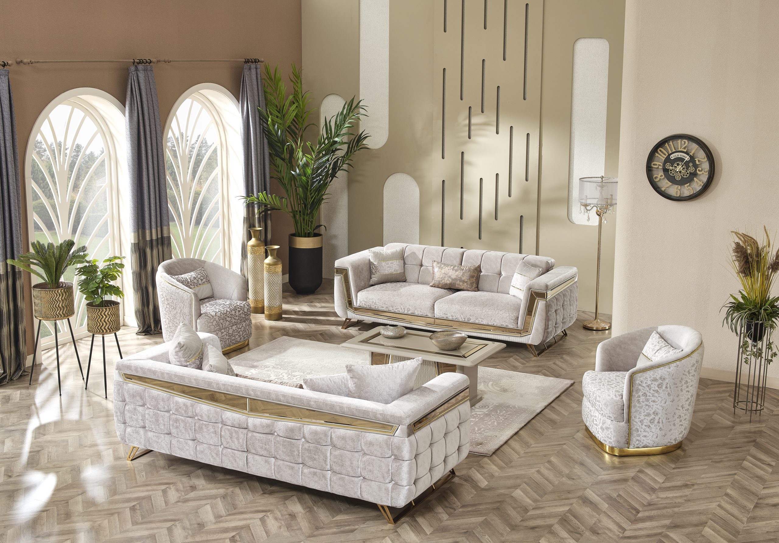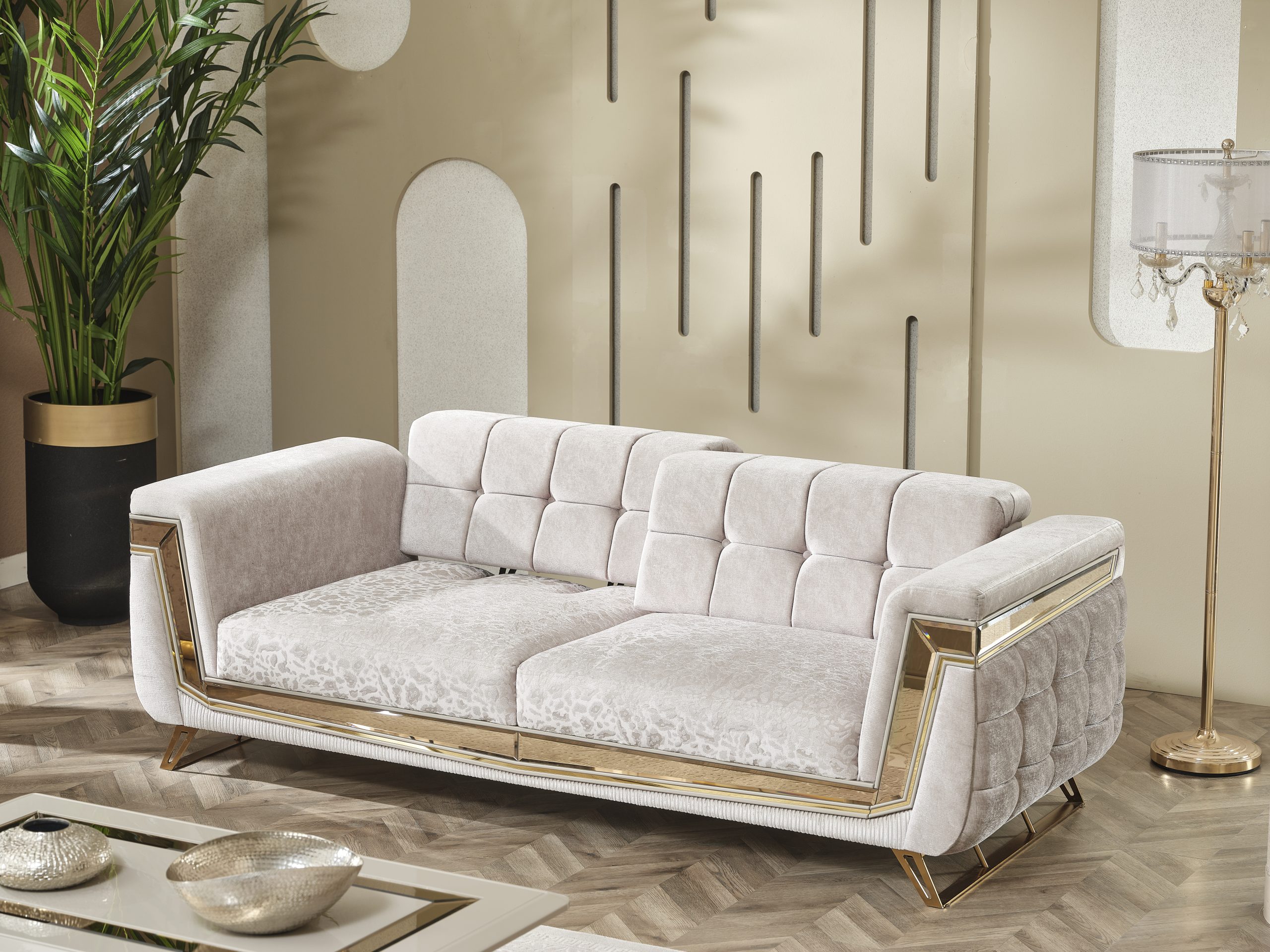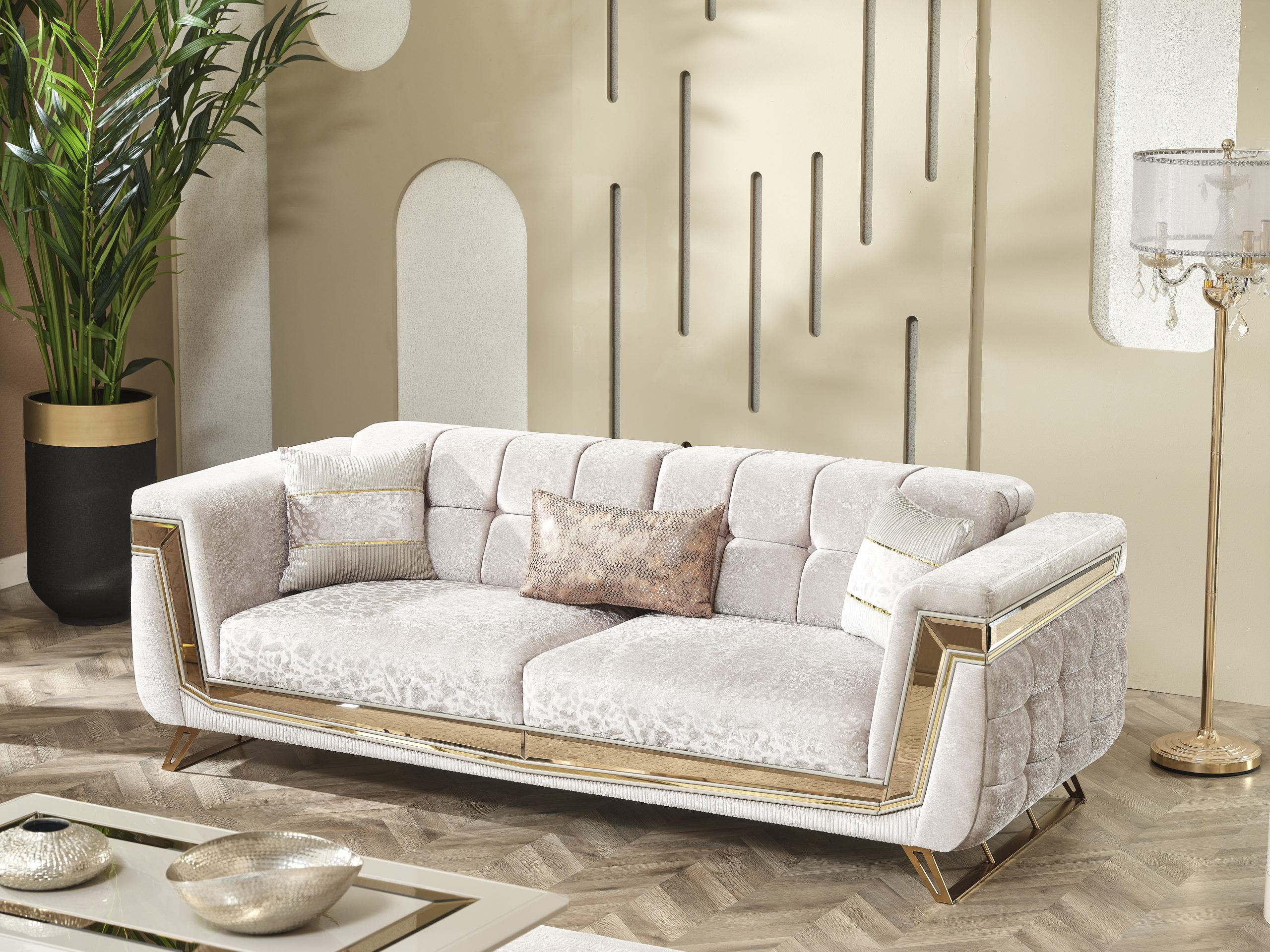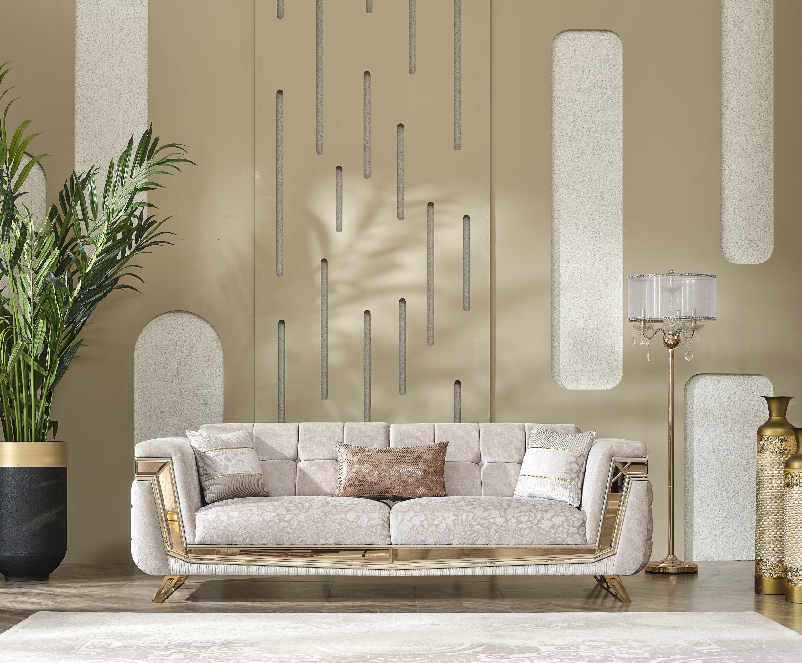 Milano Soffgrupp kombinerar elegans och moderna linjer för att ge ditt hem en touch av lyx. Med sina gyllene detaljer, unika tygstruktur och originella design skapar den en iögonfallande atmosfär. Milano är inte bara en sittgrupp – det är ett uttryck för stil.