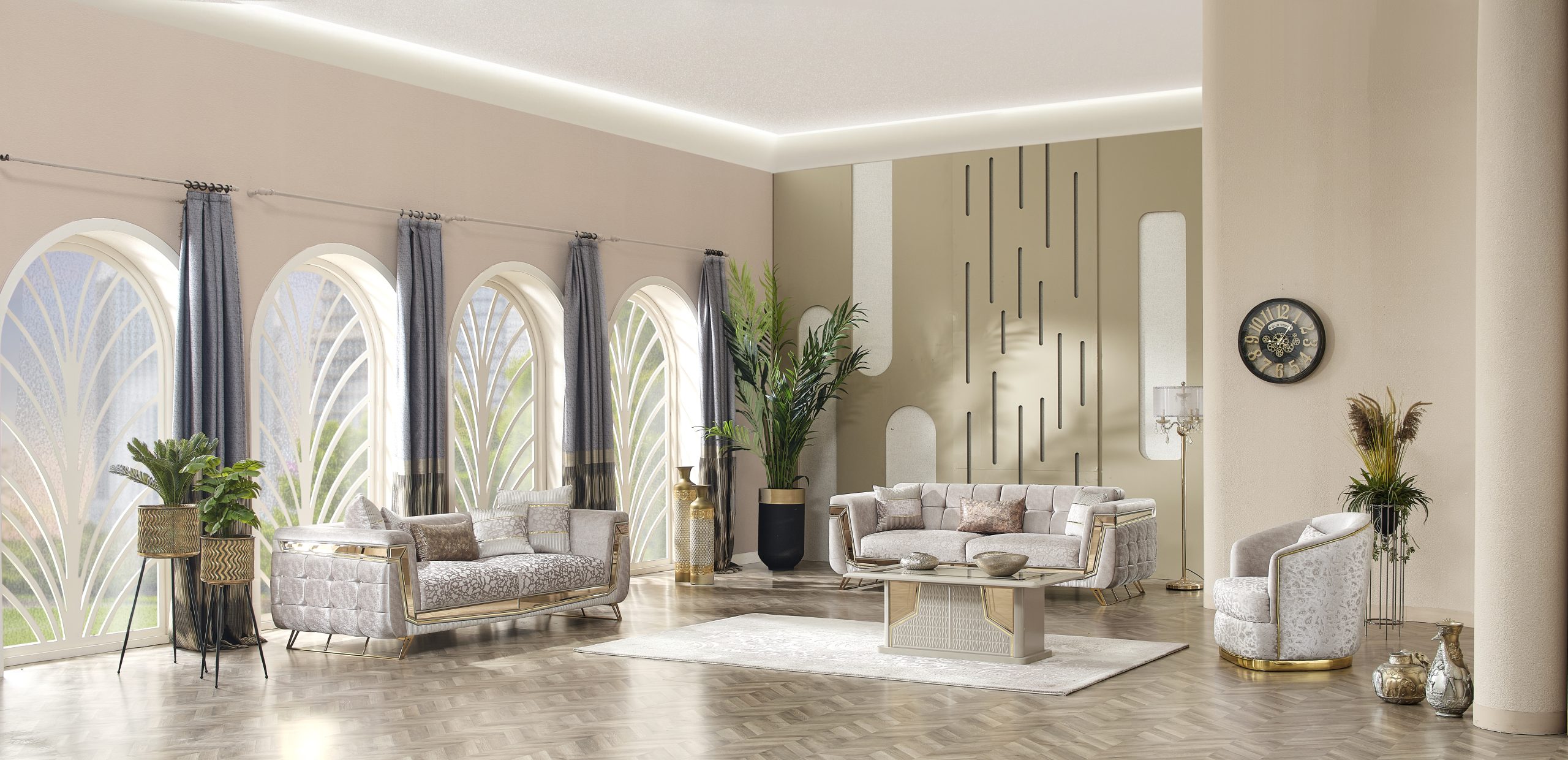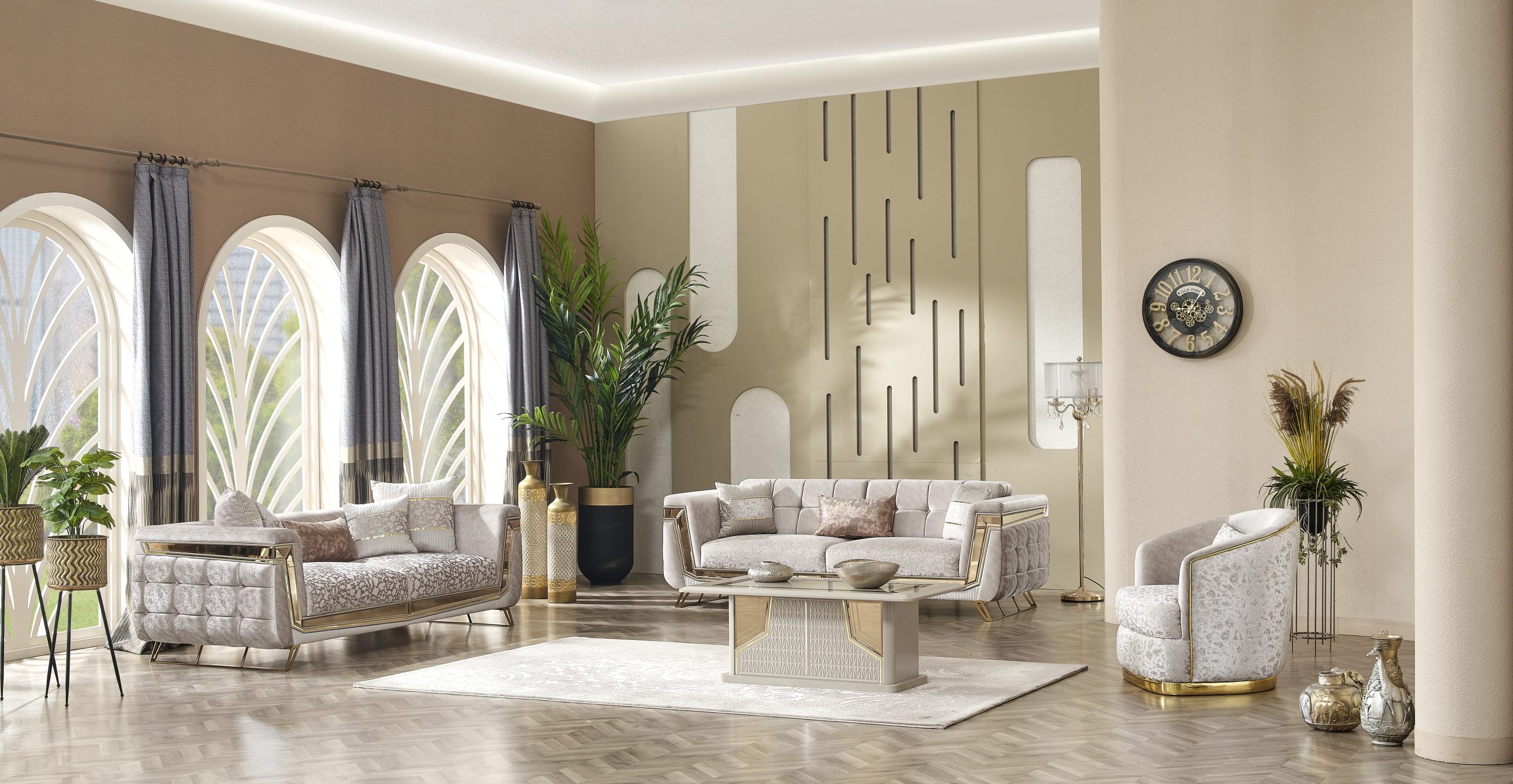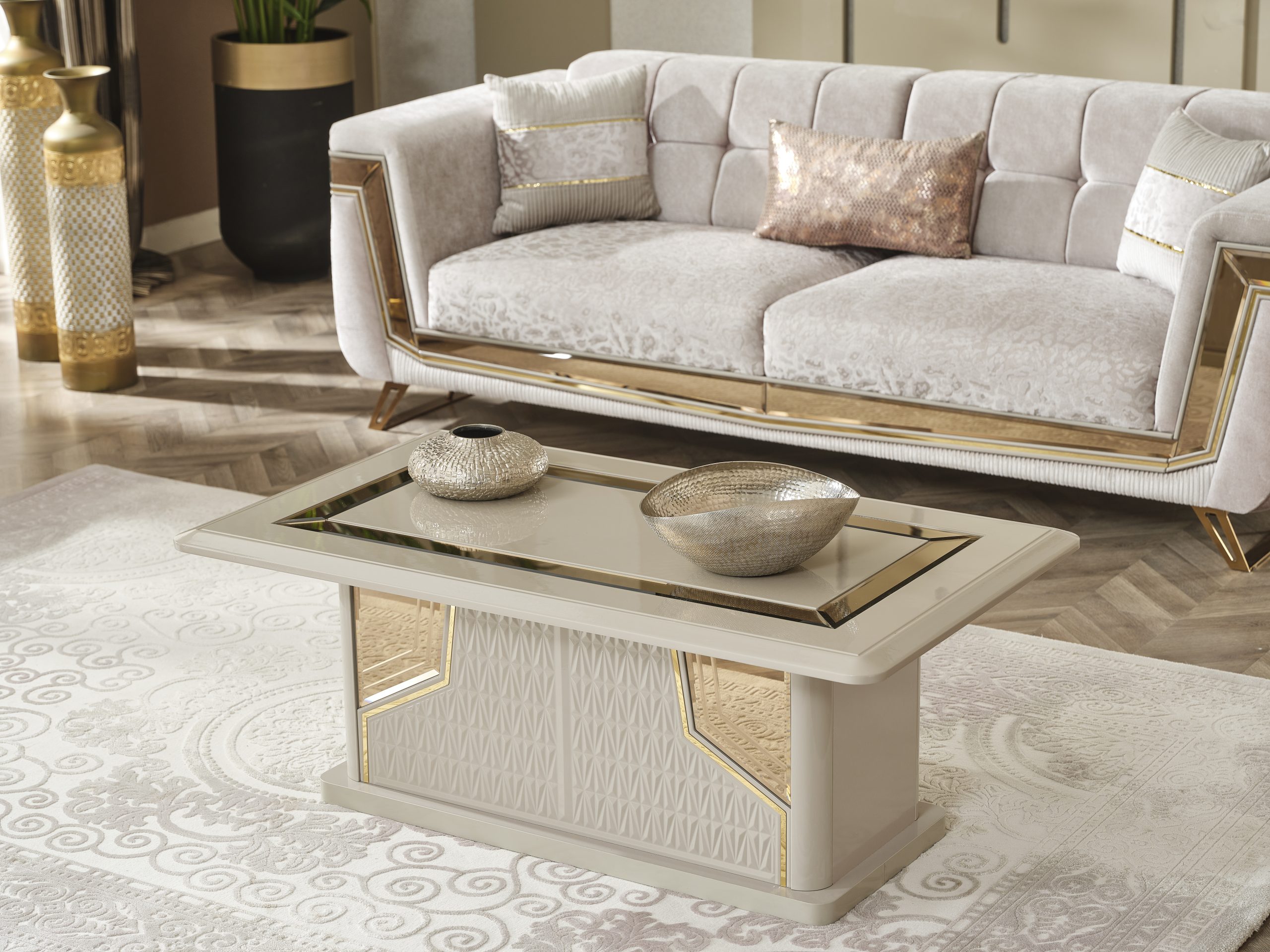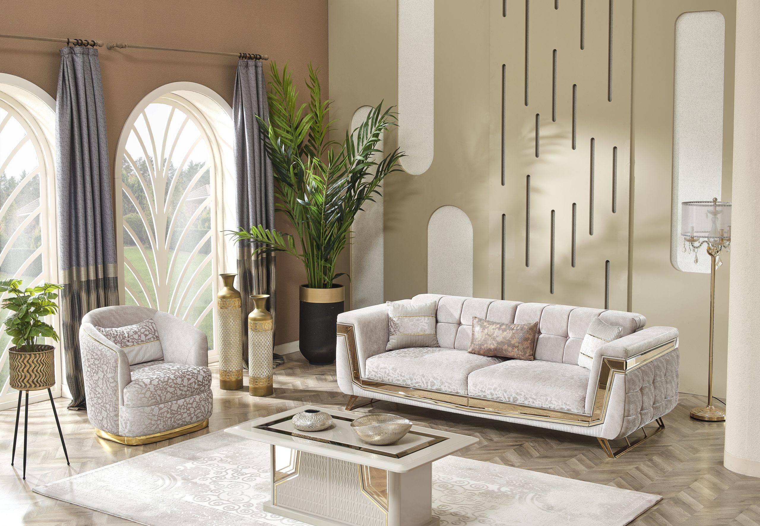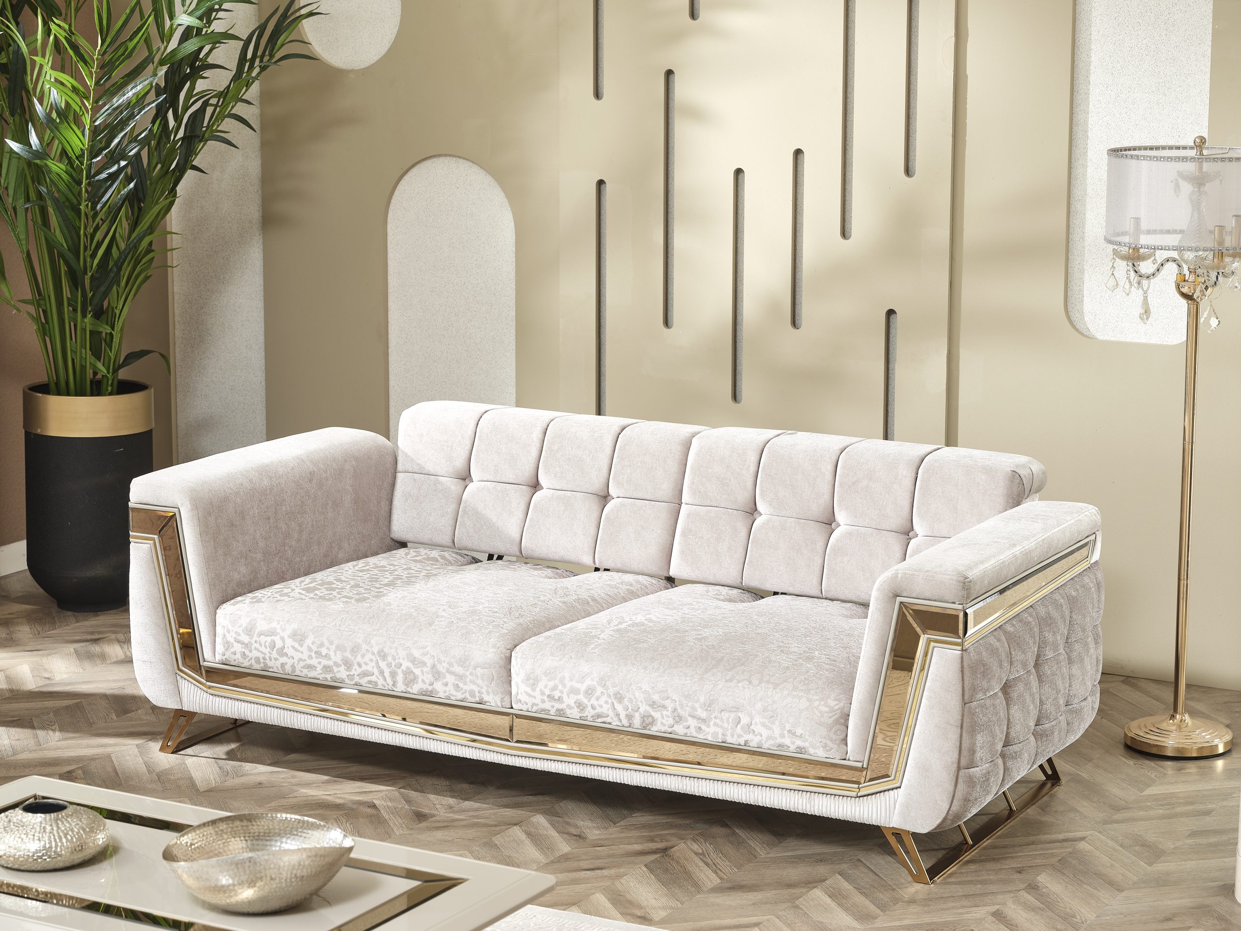 Milano Soffgrupp kombinerar elegans och moderna linjer för att ge ditt hem en touch av lyx. Med sina gyllene detaljer, unika tygstruktur och originella design skapar den en iögonfallande atmosfär. Milano är inte bara en sittgrupp – det är ett uttryck för stil.