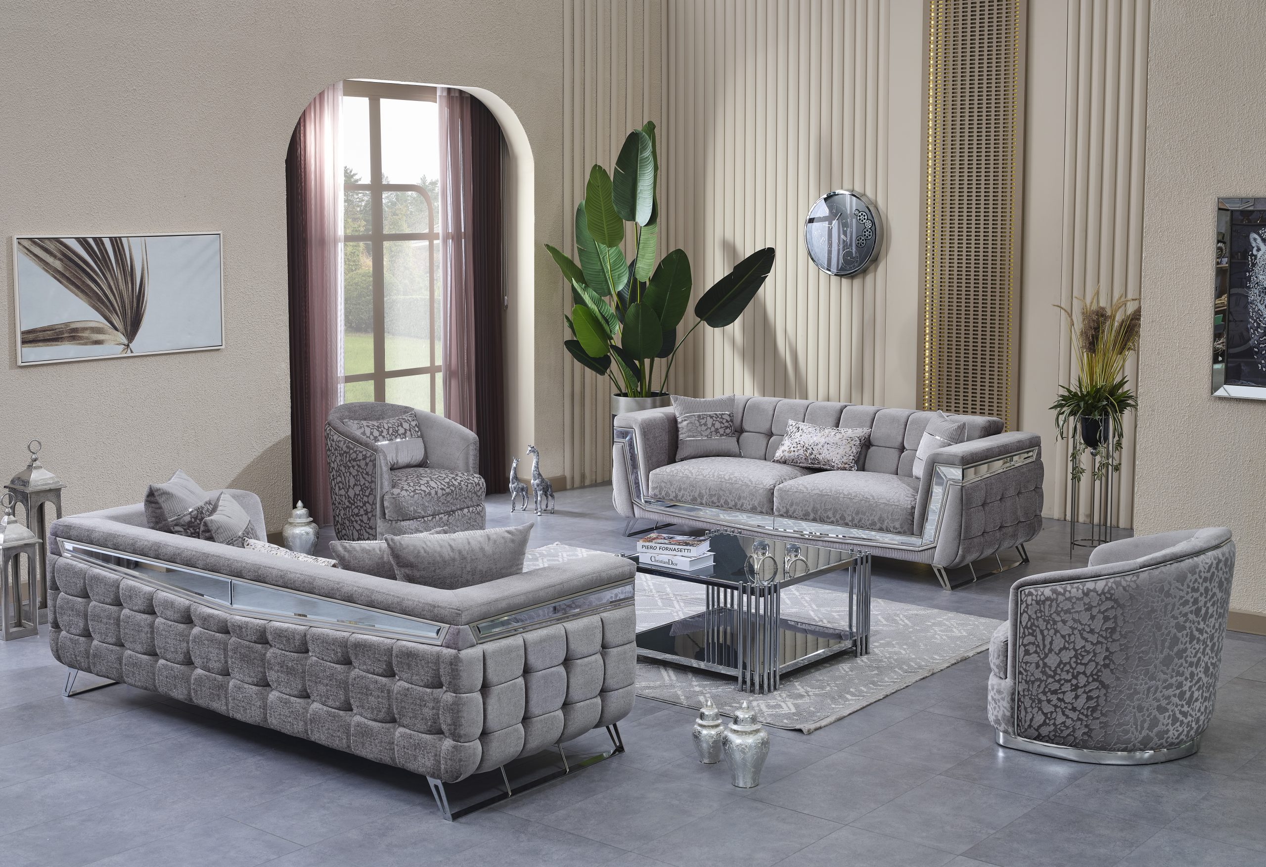 Milano Soffgrupp kombinerar elegans och moderna linjer för att ge ditt hem en touch av lyx. Med sina gyllene detaljer, unika tygstruktur och originella design skapar den en iögonfallande atmosfär. Milano är inte bara en sittgrupp – det är ett uttryck för stil.